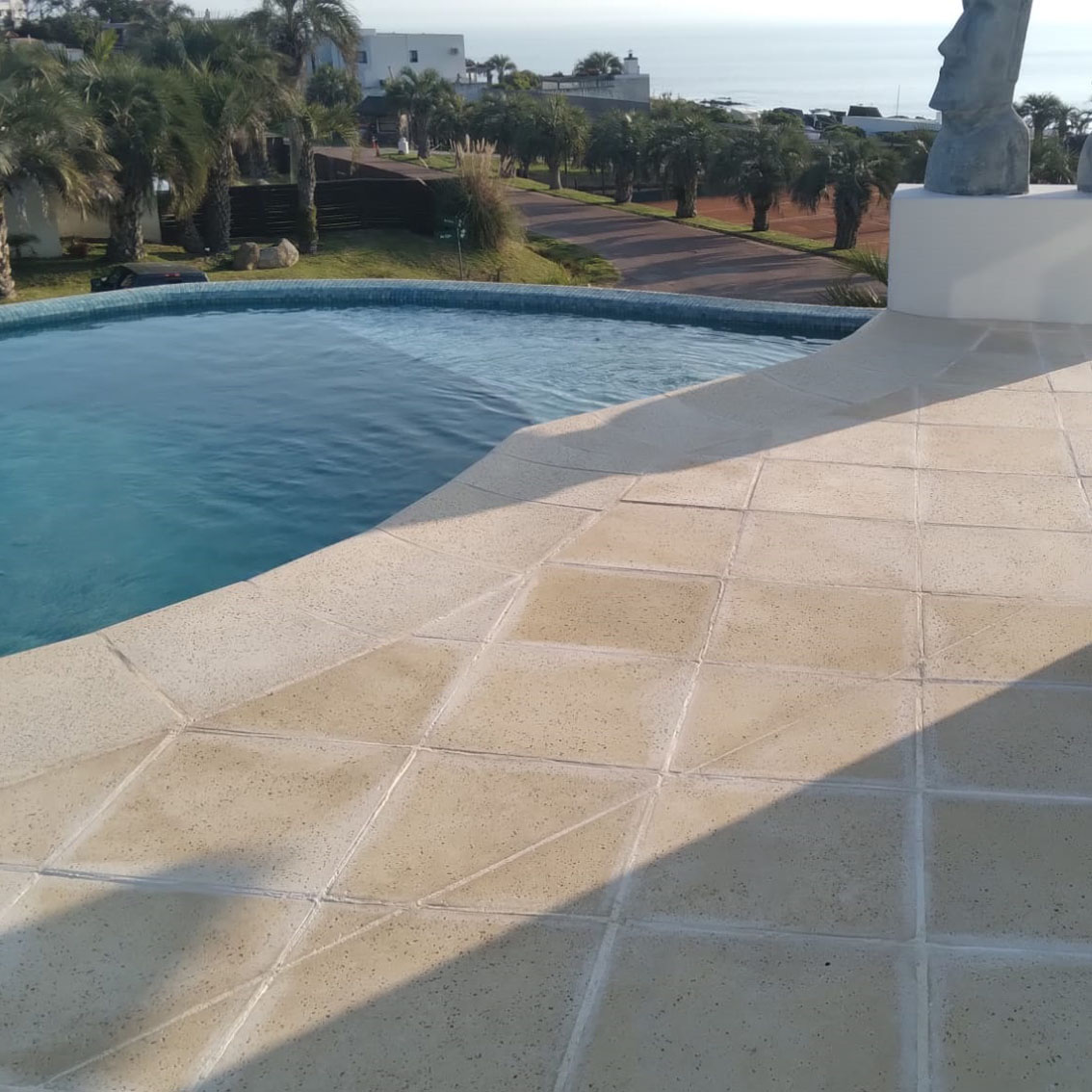 Pieza con terminación redondeada, apta para ser usada en bordes de piletas de alta seguridad 95% antideslizante con dos caras biseladas. » Más info sobre envío y descarga » Mas info sobre cuidado en atermico
