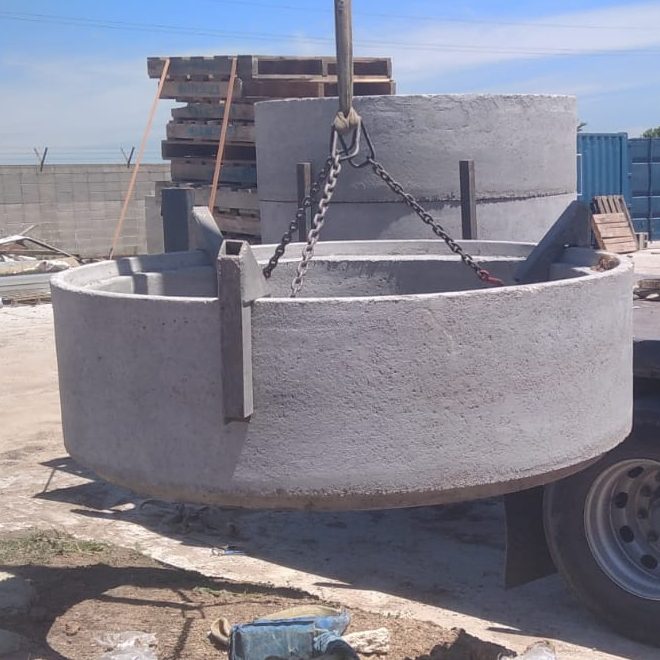 Aros en hormigón vibro-prensados de linea industrial, con hierro y encastre prolijo y profundo.