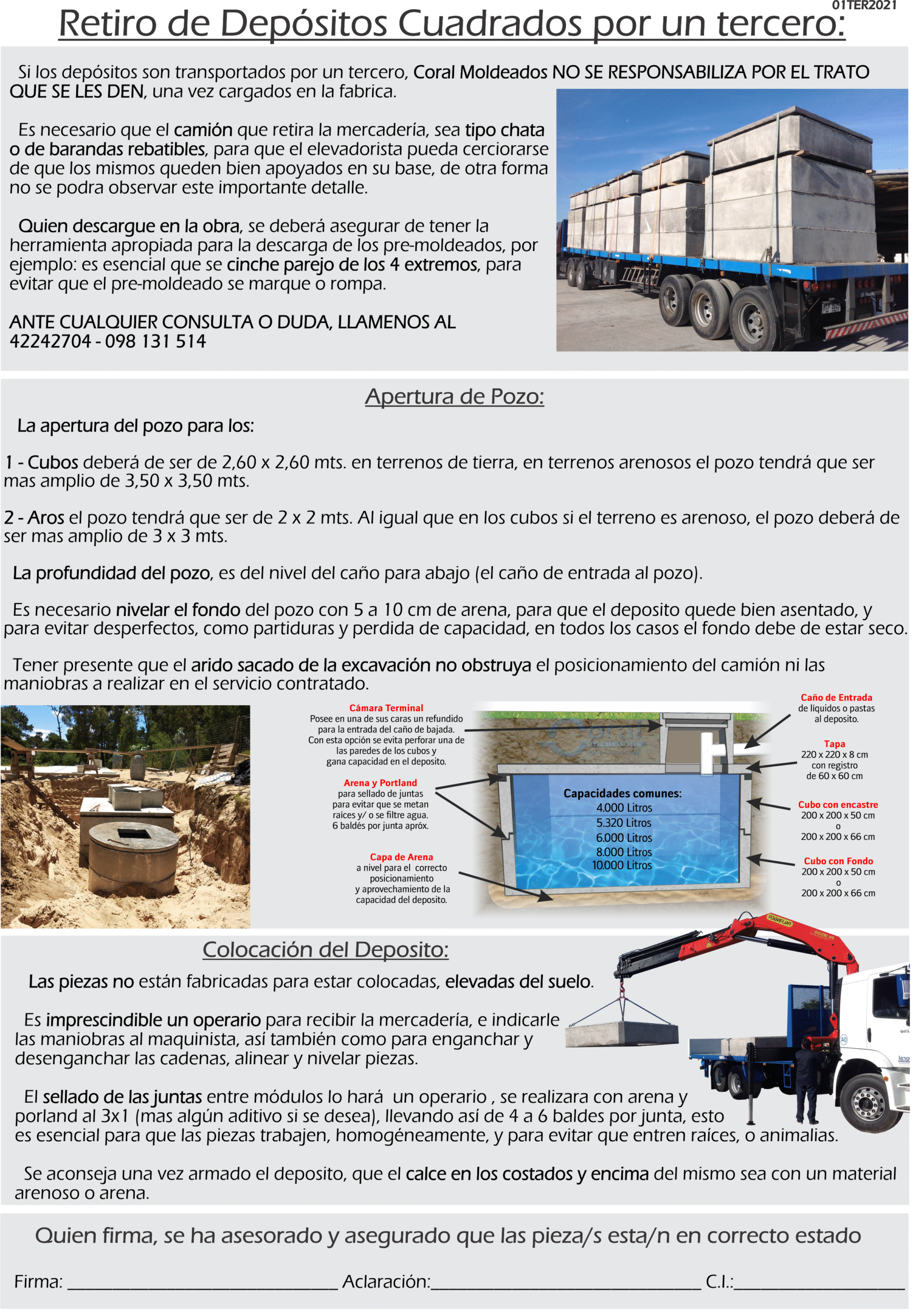 Cubos para depósitos de agua de base cuadrada. 10 cm de pared. Con encastre