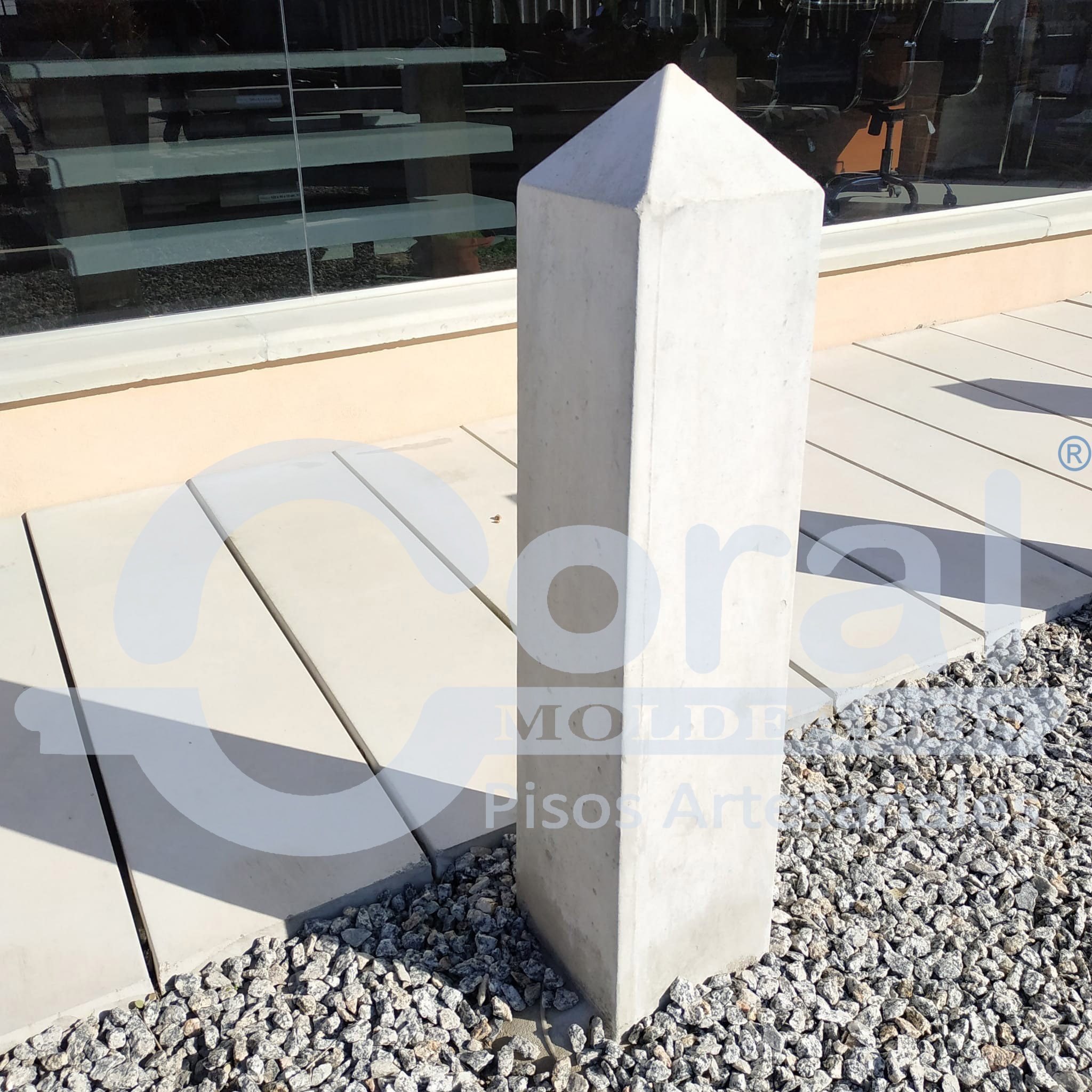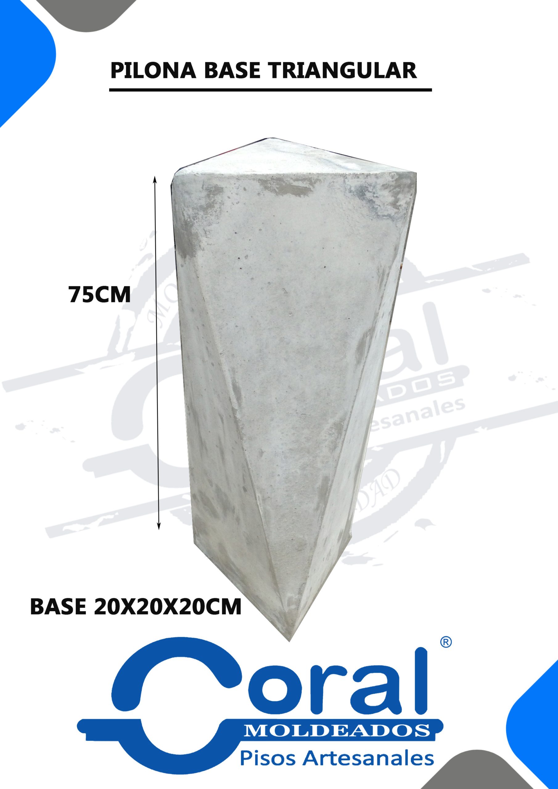 Pilona con base triangular de 20 x 20 x 20 cm. Altura total: 75 cm
