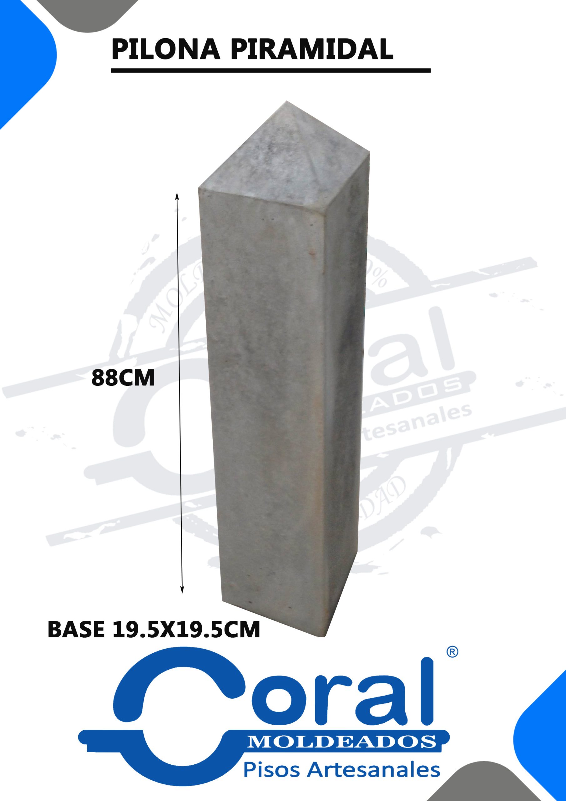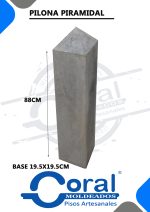 Pilona en pirámide con base de 19,5 x 19,5 cm y terminación en diamante. Altura total: 88 cm